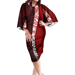Best Sale Custom Plus Size Ladies off the Shoulder Party Dress Tonga Puletasi Half Sleeve Dress Fiji Polynesian Print Dress 2pcs